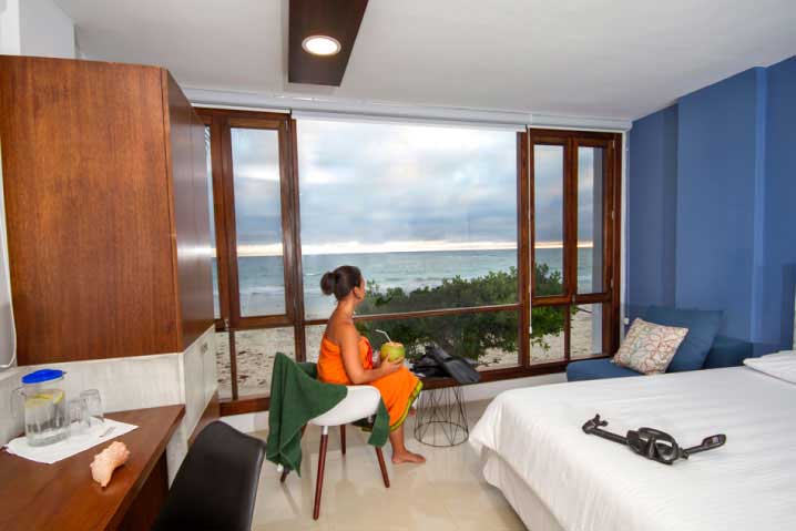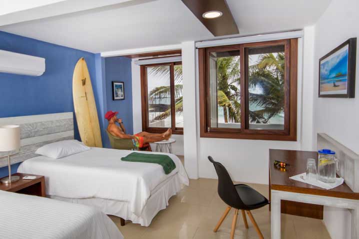El Hotel La Casita de la Playa Galápagos ofrece, sin lugar a dudas, una combinación perfecta de comodidad y belleza natural. Así mismo, está ubicado justo en la orilla de una impresionante playa en Puerto Villamil, en la Isla Isabela, y se encuentra a solo cinco minutos a pie del muelle principal. Además, nuestro hotel ofrece un acceso fácil y directo a una de las playas más famosas de Isabela, donde los huéspedes pueden disfrutar de una variedad de actividades recreativas mientras se deleitan con las impresionantes vistas del Pacífico.